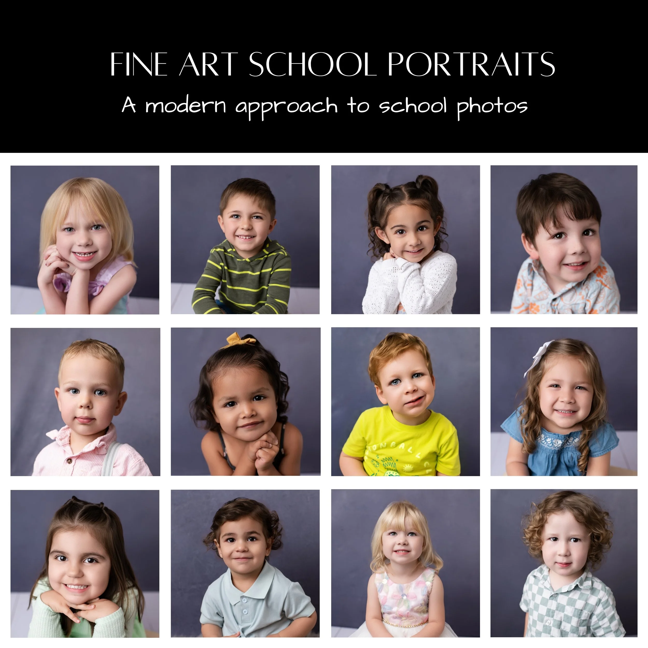 I can accommodate schools with as few as 30 children to as many as 1,000. No school is too small for me to offer Fine Art School Portraits for their kiddos.